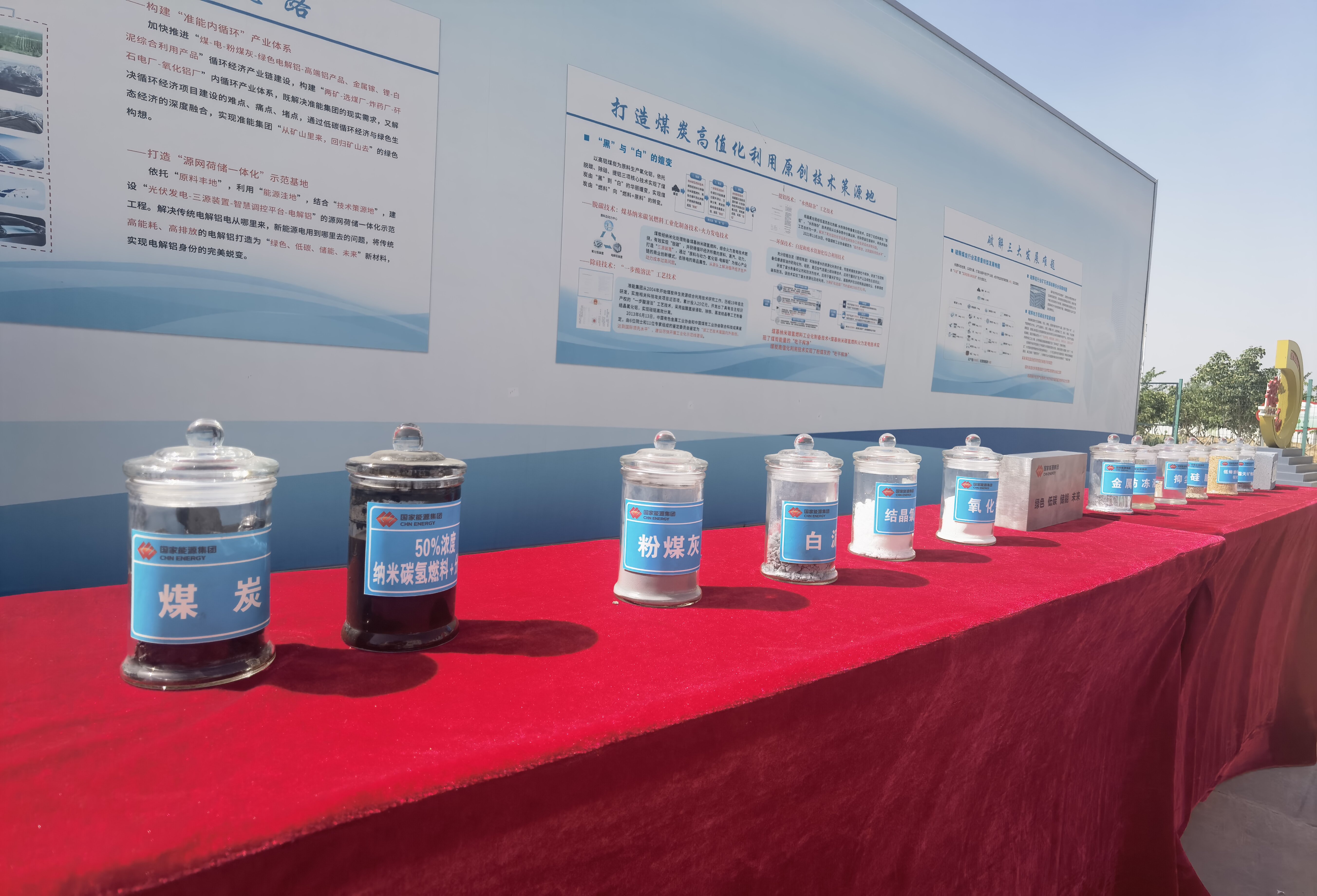 基地內(nèi)的展示桌上,記者看到,透明密封罐中的原料排成一排,有可用做復(fù)墾肥料的硅肥,有可用作銨油炸藥的純化劑,有可用于列車防凍的防凍液,有可用于光伏電池的鎵和鋰,還有可用于建筑材料的蒸壓磚……這些原料的前身,正是煤炭。